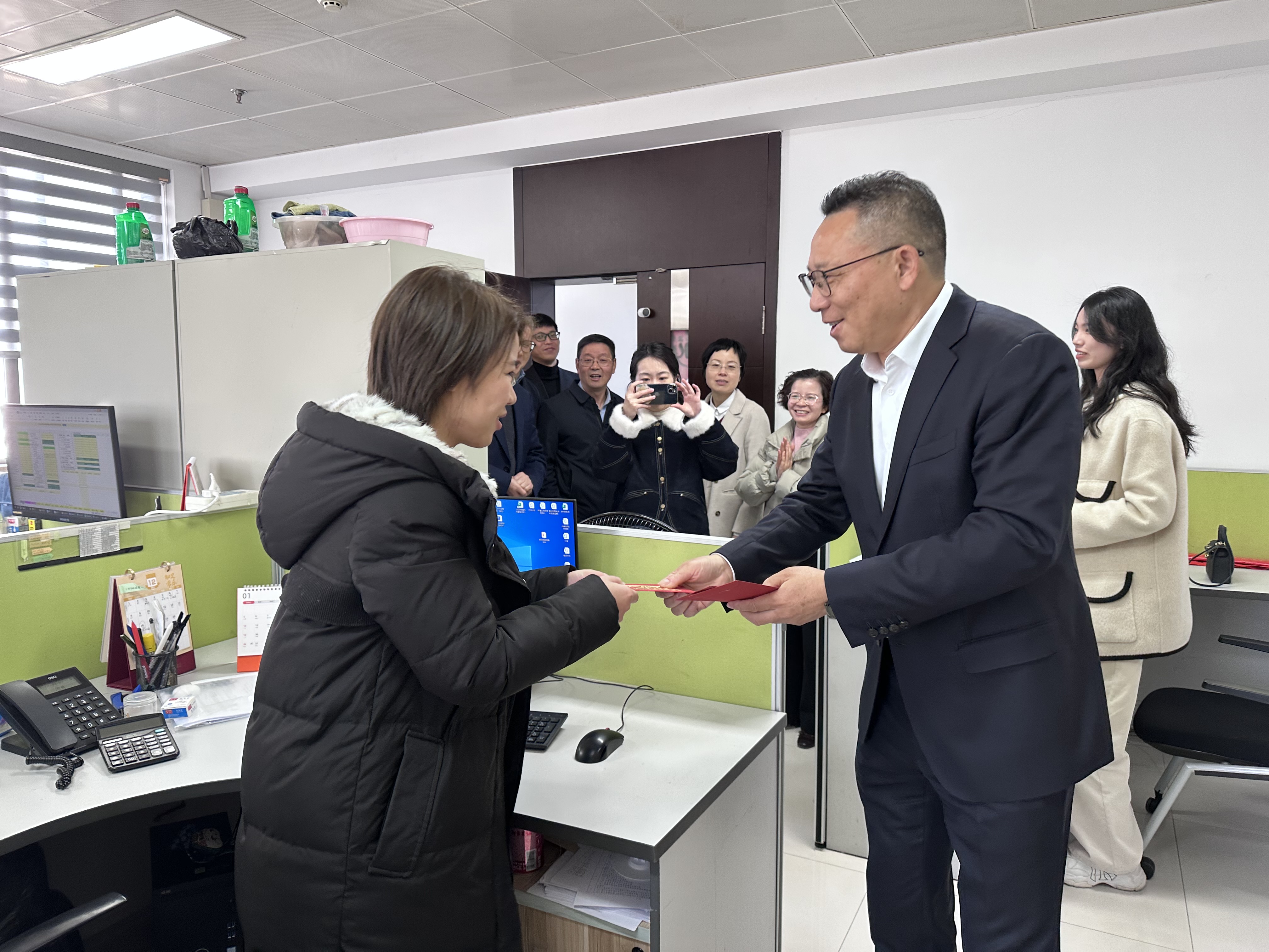 公司領(lǐng)導(dǎo)一行分批先后走訪總部9個(gè)部室以及5家所屬(合署)公司,對(duì)在崗員工致以新春祝福,了解工作開(kāi)展情況,鼓勵(lì)大家新年新氣象、實(shí)現(xiàn)新目標(biāo),號(hào)召各部室、各所屬公司主動(dòng)謀劃部署,全面推動(dòng)工作穩(wěn)中求進(jìn)、奪取“開(kāi)門(mén)紅”。走訪現(xiàn)場(chǎng),寬敞明亮的辦公區(qū),歡聲笑語(yǔ)此起彼伏,洋溢著一派喜慶祥和的氣息。